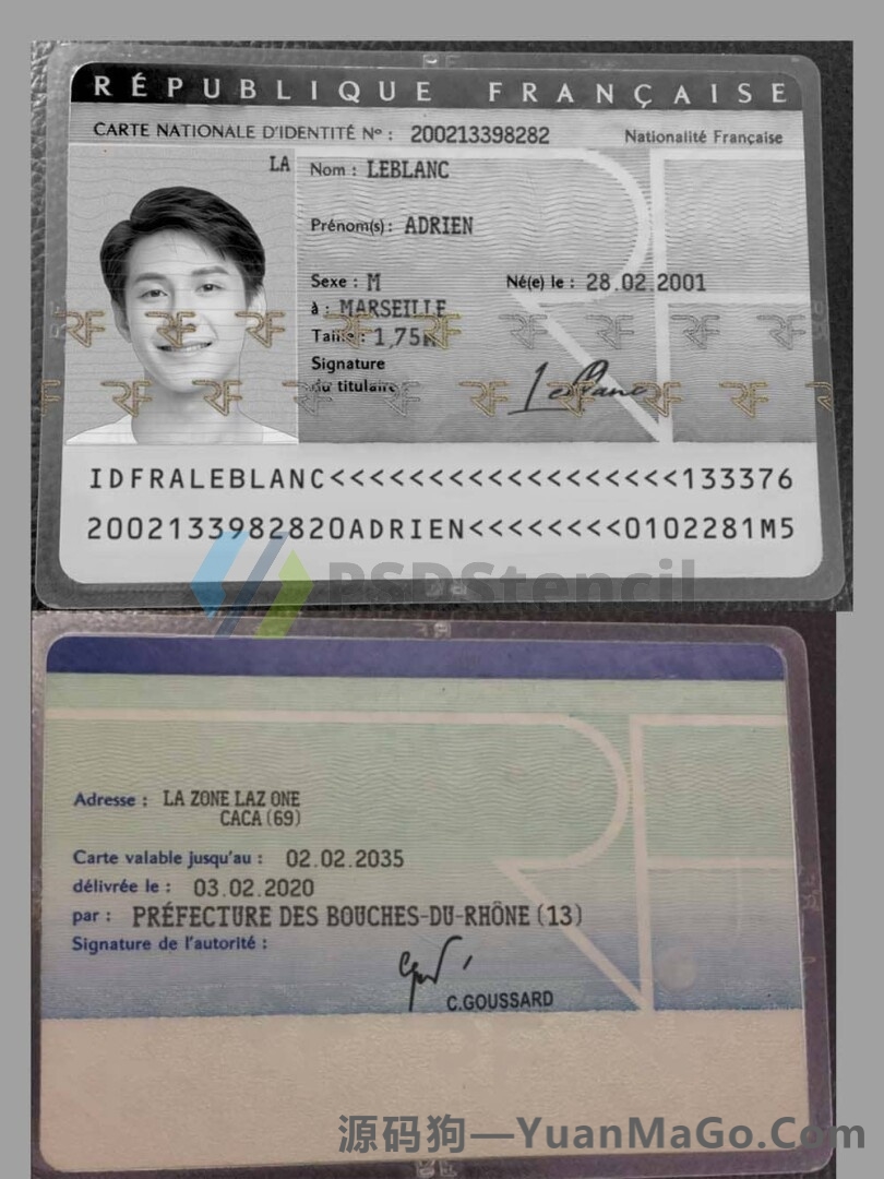法国的身份证是一种普遍使用的法定身份证明文件,称为“国民身份证”(Carte nationale d’identité)或简称“CNI”。该卡上包含持卡人的姓名、出生日期、照片、住址等个人信息,并由法国政府颁发。